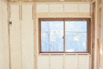<アクアフォームは住宅の隅から隅まで家全体をすっぽり覆ってしまう現場吹き付け発泡による断熱工事です。>